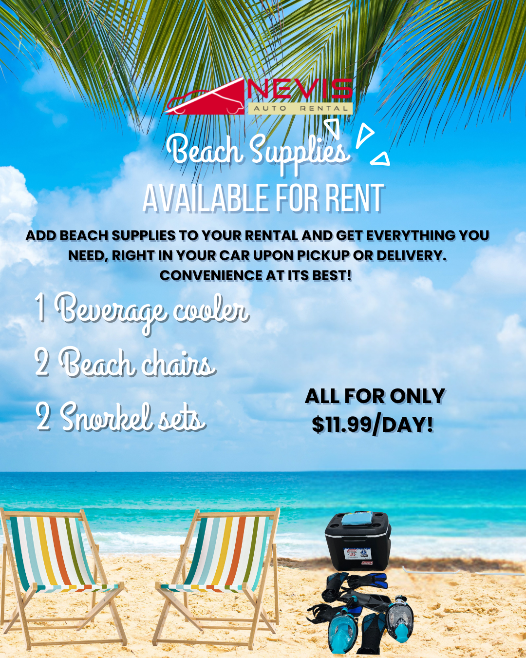 Nevis Auto Rental is a full-service car rental company that offers FREE car rental pick-up and drop off in select locations, Roadside Assistance and Insurance coverage. Car rental equipment such as Child Safety Seats and Beach Supplies are available.